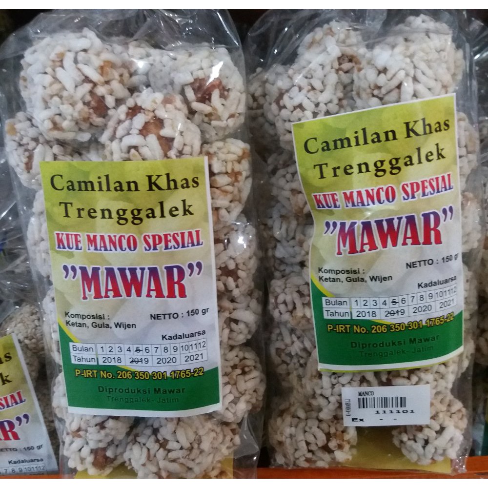 Selain terkenal dengan pantai pasir putihnya kota ini juga wisata unik lainya yaitu makanan khasnya. Klo orang trenggalek apalagi kampak udah gak asing lg sama jajanan khas yang satu ini. Terletak di antara kota tulungagung dan ponorogo kota ini menawarkan beribu makanan khas. Manco wijen adalah jajan khas trenggalek yang terbuat dari ketan kemudian dilumuri dengan gula merah dan ditaburi dengan wijen manco wijen ini memiliki rasa manis tapi anda tidak perlu khawatir dengan rasa manis manco karna yang digunakan adalah gula merah jadi relatif aman untuk di konsumsi.